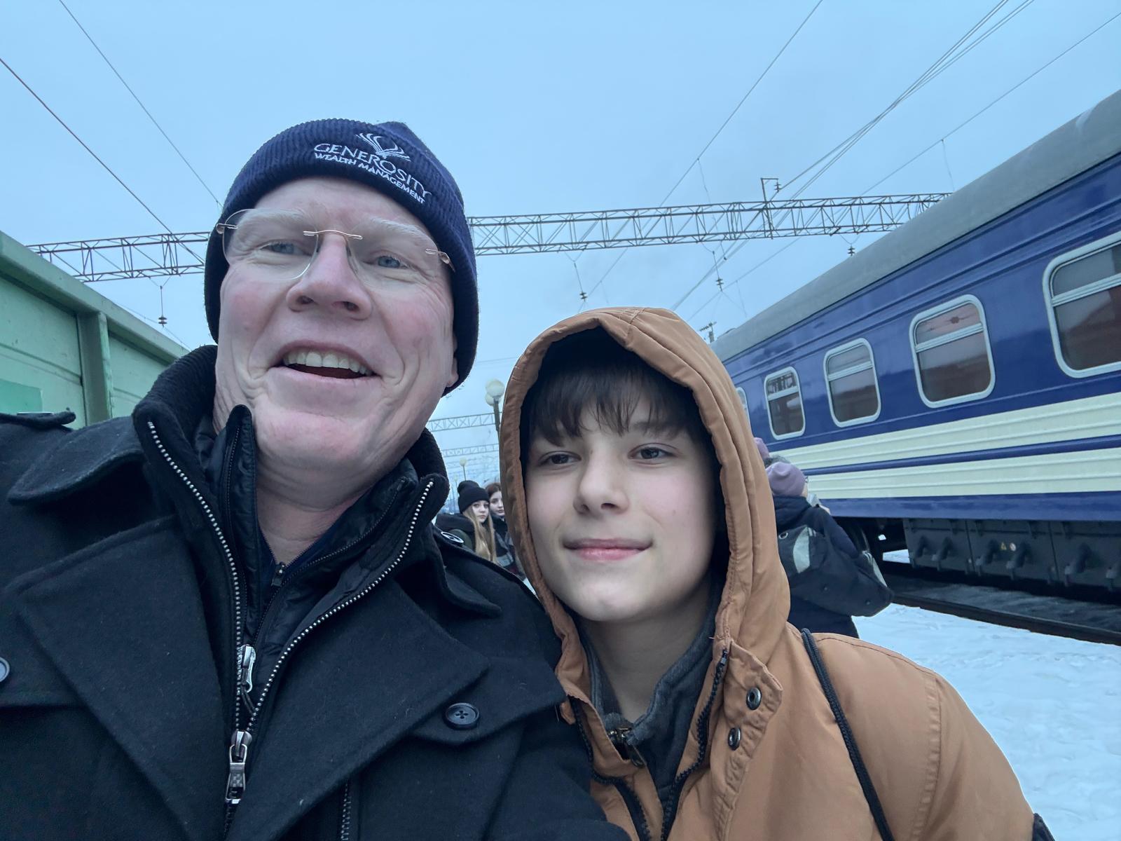 Board member Michael Brady with Camper Artem.
