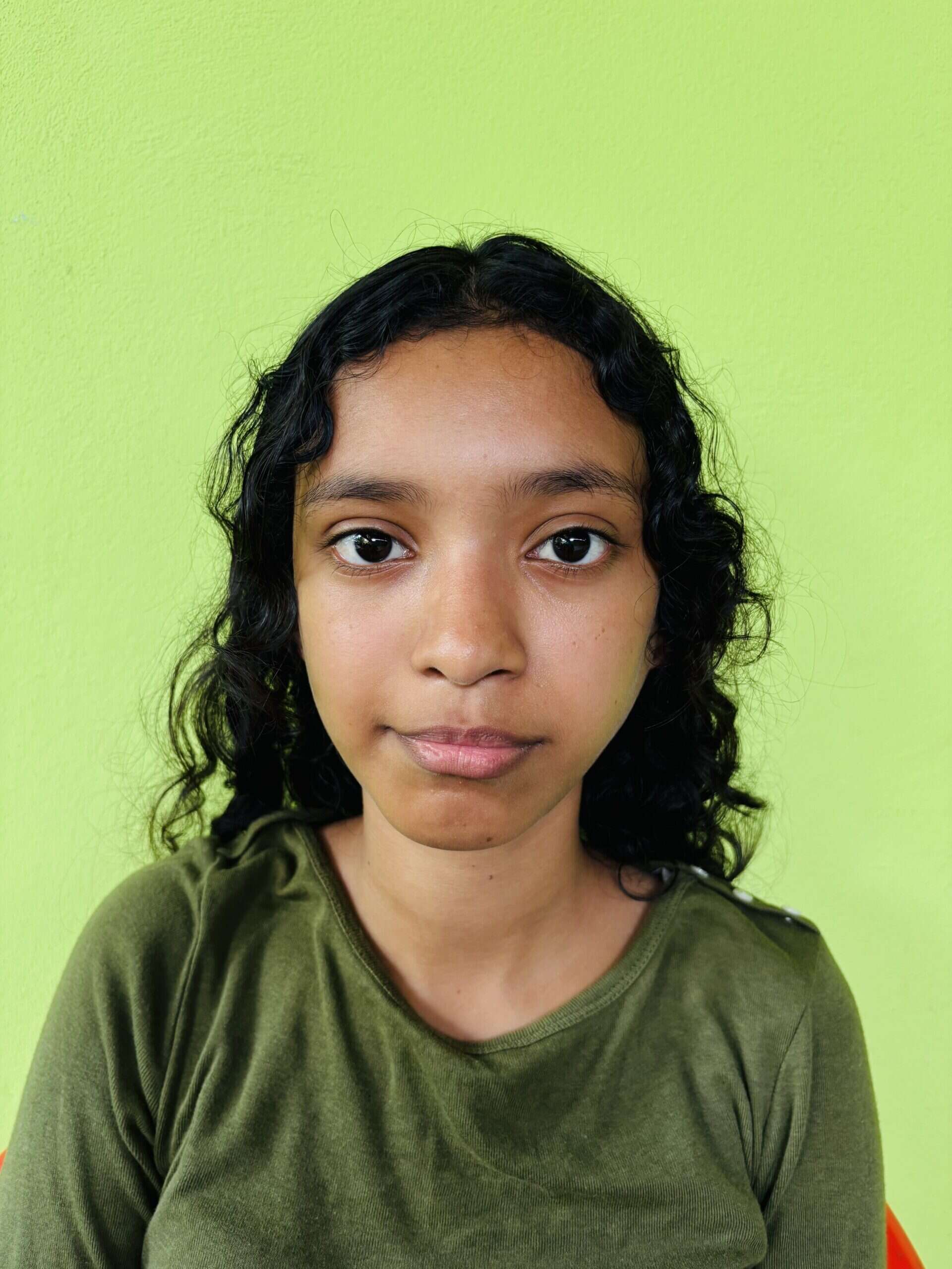 A very quiet and peaceful girl who likes playing soccer and other games with her friends. She is in 8th grade. Her favorite color is black, and when she grows up, she would like to be a systems engineer.